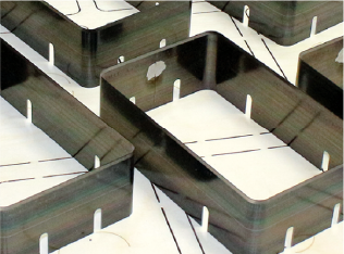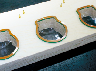 トムソン抜型は、金型で成形されたプラスチック樹脂製品をひとつずつきれいに切り分けていくもので、トリミング工程で使用されます。製品を美しく完成させるためには必要不可欠なツールです。抜型の製作には高硬度のトムソン用ブレードを使用。先進のベンディングシステムなどを活用して抜きズレのない正確で美しい抜型を実現します。さらに高い加工精度を要求される場合には、職人のすぐれた技が求められます。